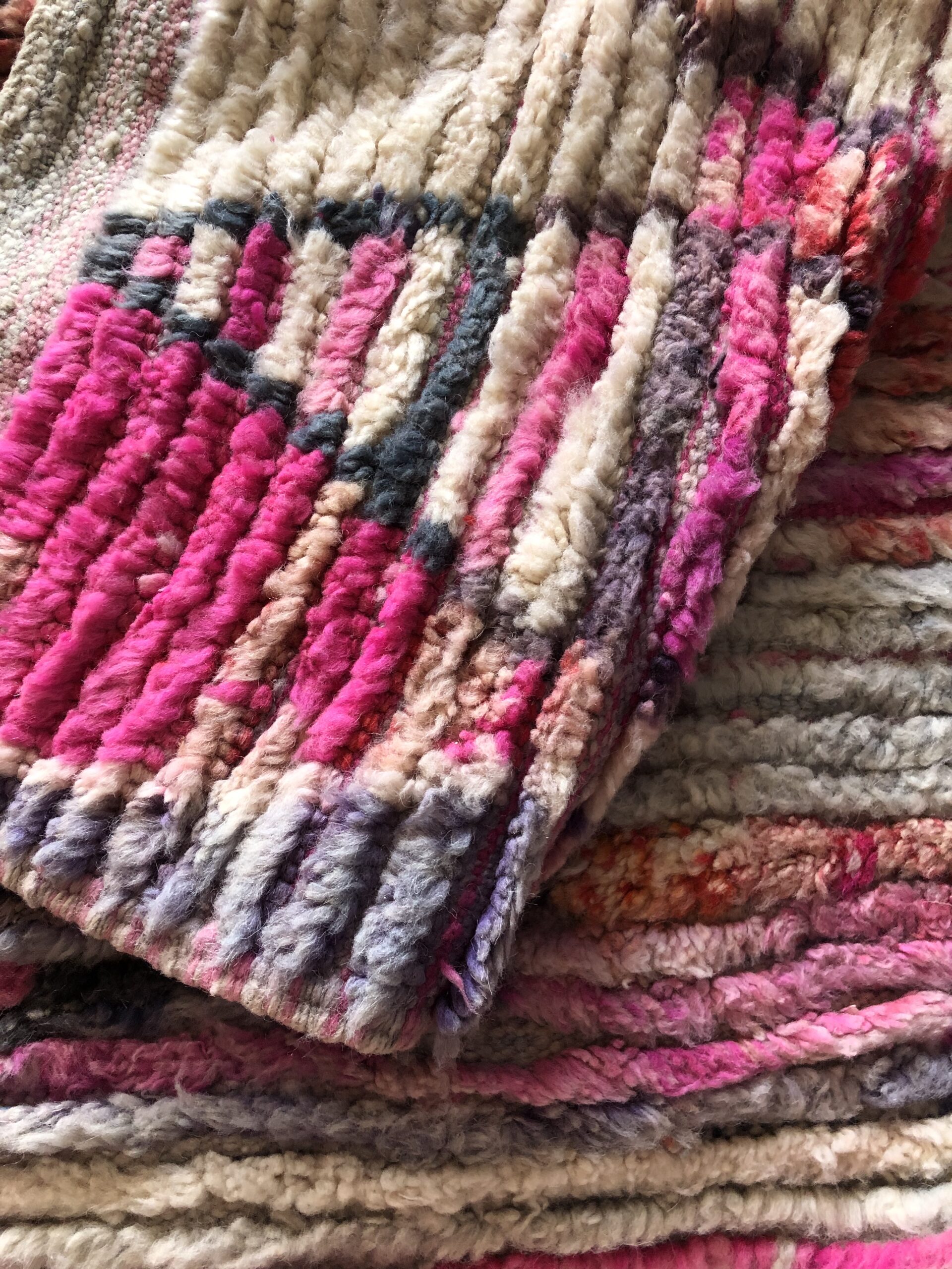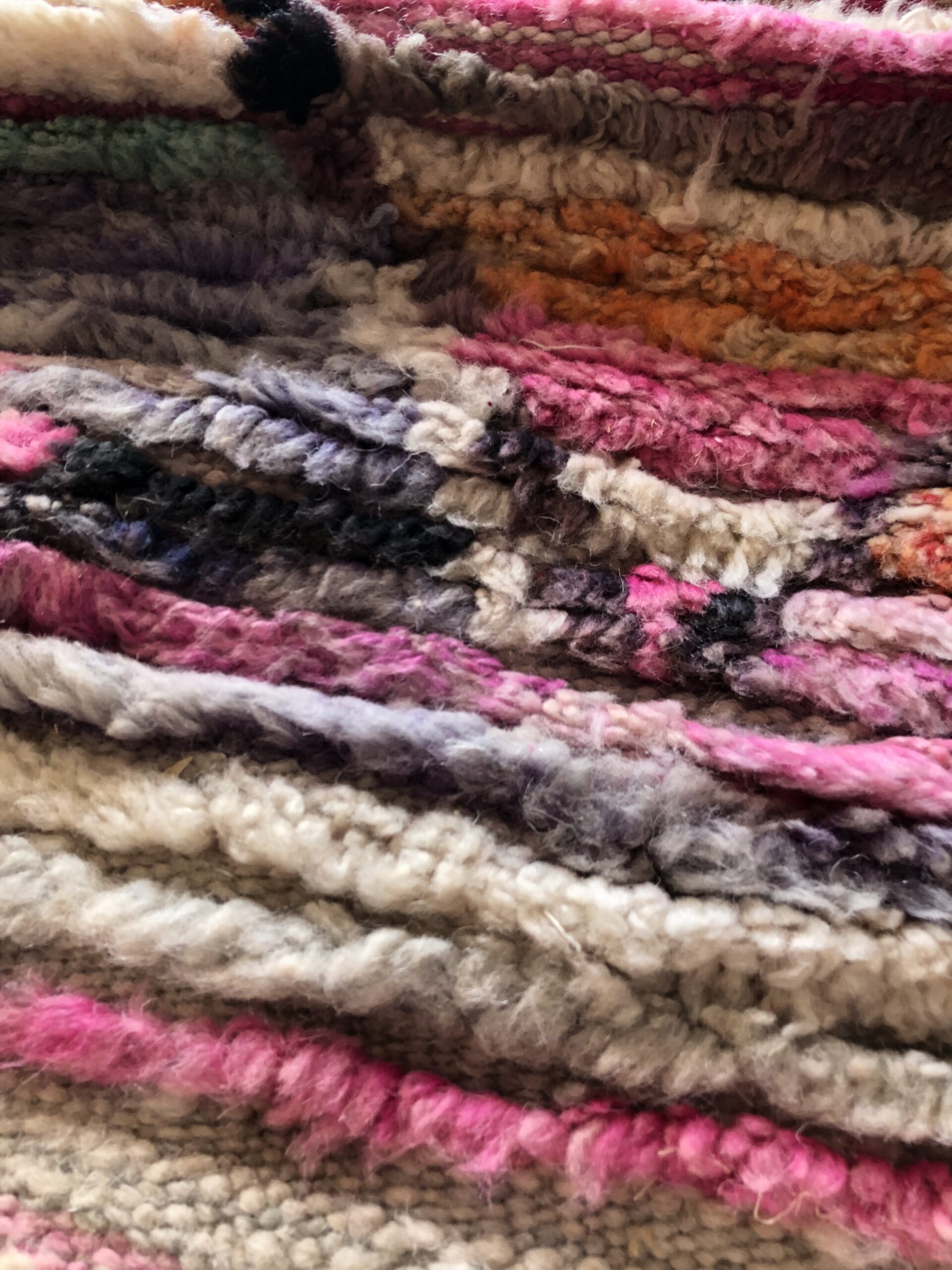 kolor: dywan w odcieniach różu, fioletu, pomarańczu i beżu