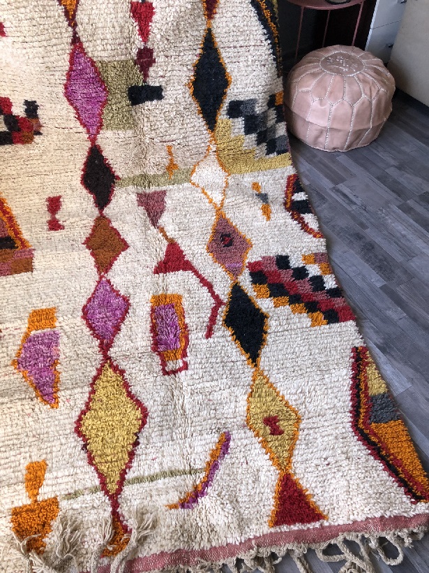 Azilal to typ dywanu z surowej wełny owczej zmieszanej z bawełną lub stworzony głównie z bawełny.